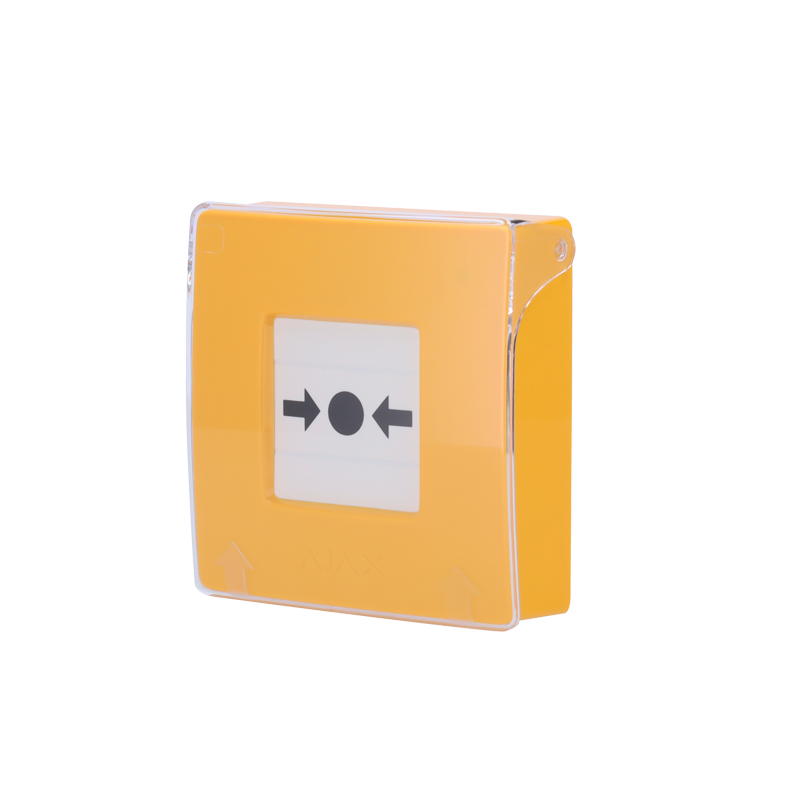 Pulsante di allarme antincendio o attivatore di scenari colore GIALLO. Compatibilità: Unità centrali Hub Plus, Hub 2 (4G), Hub 2 Plus, Hub Hybrid (2G), Hub Hybrid (4G). Ripetitori: ReX, ReX 2. Alimentazione 2 batterie CR123A (in dotazione). Dimensioni: 102 × 104 × 39 mm.