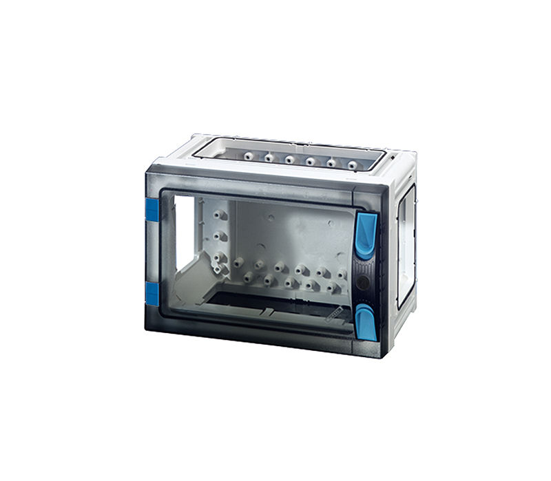 Quadro in policarbonato misura 1, SENZA pareti laterali, coperchio trasparente e maniglia di chiusura. Dimensioni esterne 270x180x163mm, dimensioni interne 216x126x140mm LxHxP