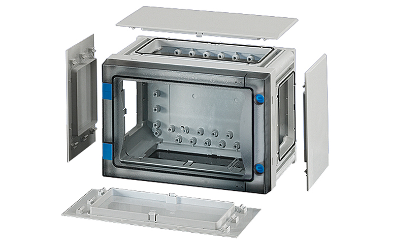 Quadro in policarbonato misura 1, IP66 completo di pareti laterali,coperchio trasparente e viti di chiusura. Dimensioni esterne 270x186x163mm, dimensioni interne 216x126x140mm LxHxP