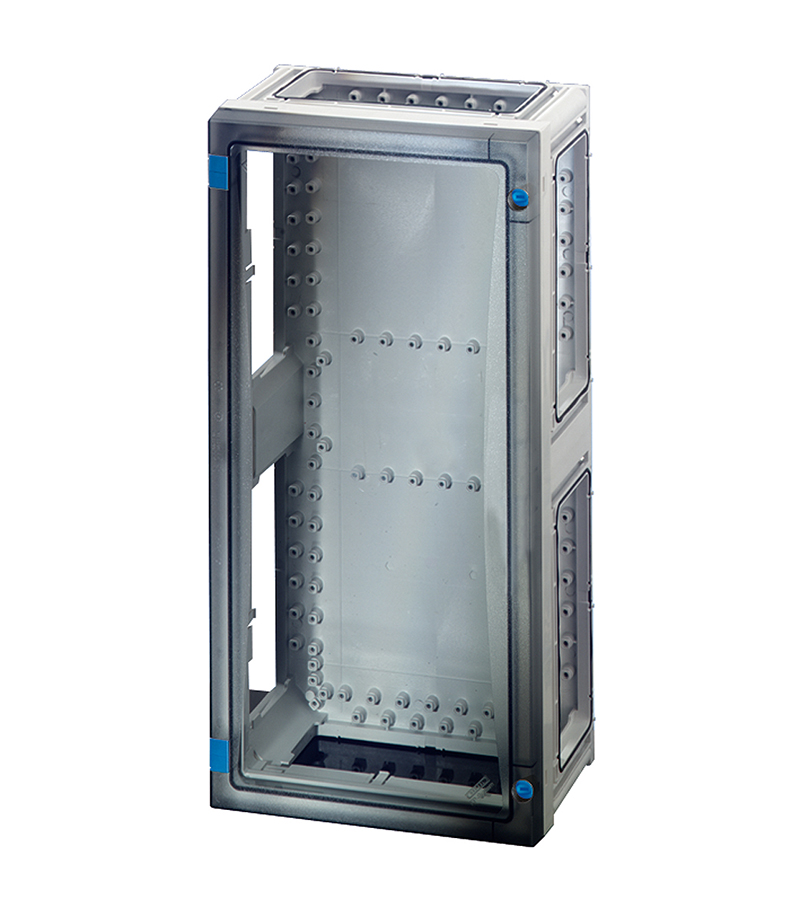 Quadro in policarbonato misura 3, SENZA pareti laterali,coperchio trasparente e viti di chiusura. Dimensioni esterne 270x540x163mm, dimensioni interne 216x486x140mm LxHxP