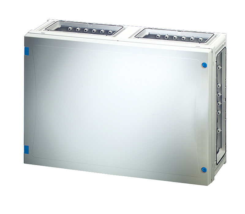 Quadro in policarbonato misura 4, SENZA pareti laterali, coperchio cieco e viti di chiusura. Dimensioni esterne 540x360x163mm, dimensioni interne 486x306x140mm LxHxP