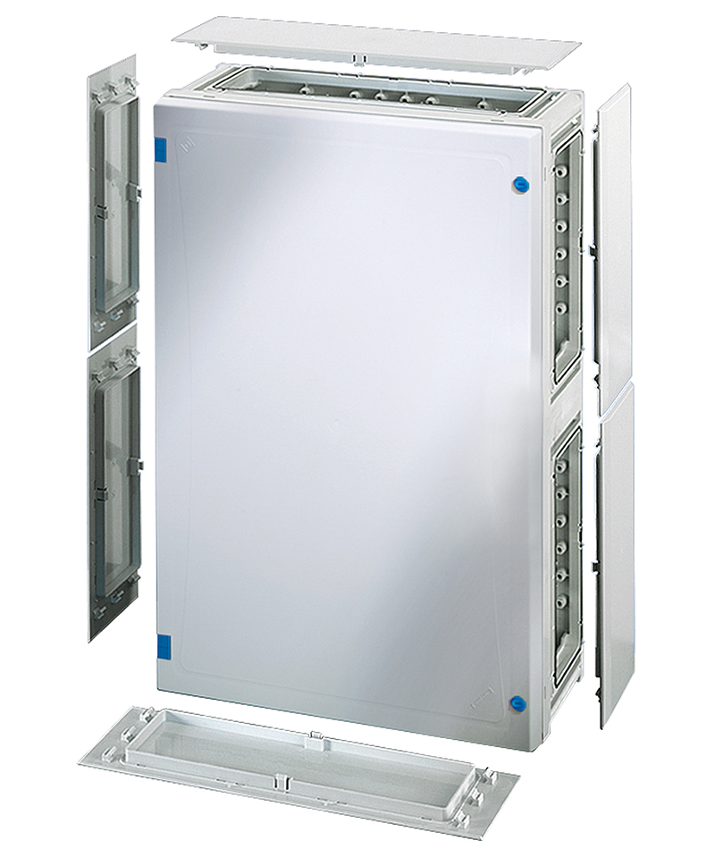 Quadro in policarbonato misura 4, completo di pareti laterali, coperchio cieco e viti di chiusura. Dimensioni esterne 366x546x163mm, dimensioni interne 306x486x140mm LxHxP