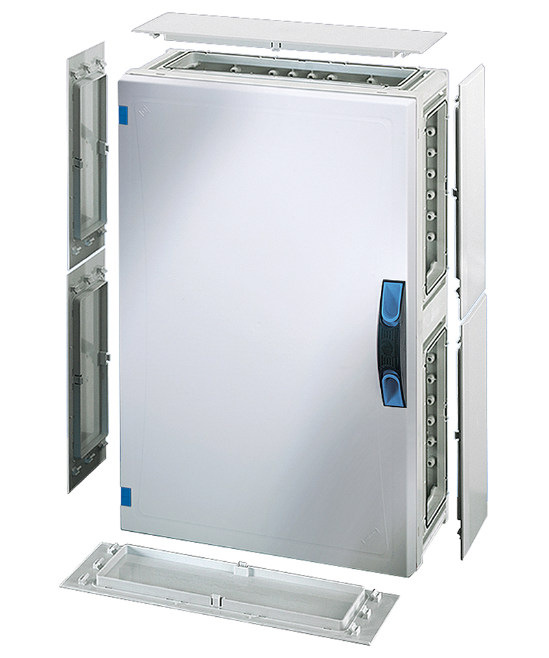 Quadro in policarbonato misura 4, IP 66, completo di pareti laterali,coperchio cieco e maniglia di chiusura. Dimensioni esterne 366x546x186mm, dimensioni interne 306x486x140mm LxHxP