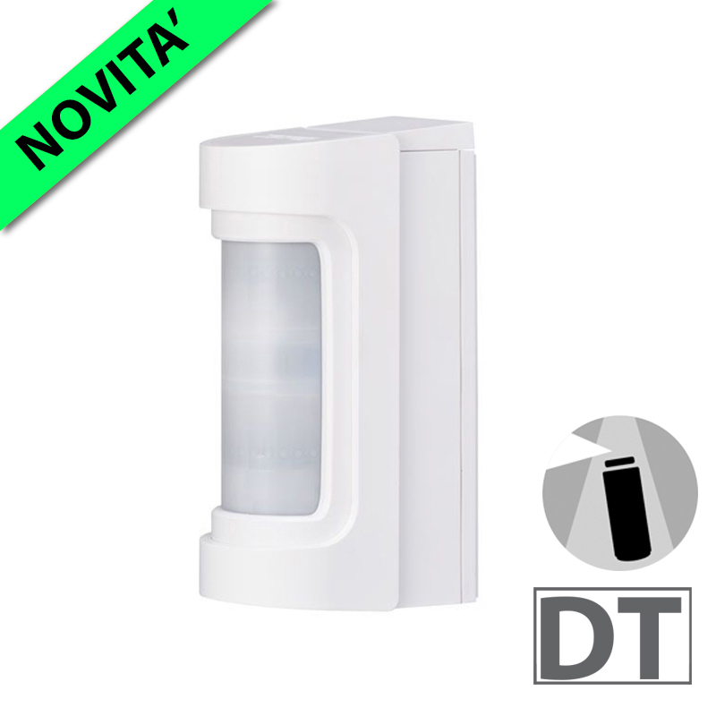 Rilevatore VXS SHIELD DT da esterno basso assorbimento 12m 90° con ANTIMASCHERAMENTO. Corpo BIANCO, coperchio BIANCO. Altezza di installazione da 0,8 a 1,2m. Ampio alloggiamento per trasmettitore via radio di varie marche. Completo di velcro adesivo per fissaggio trasmettitore, adesivi di mascheramento lenti e set di cavetti per collegamento al trasmettitore, anche per alimentazione diretta da pile litio CR123. Comprensivo di livella nel guscio posteriore per una corretta installazione. Uscita separata per antimascheramento. Tamper antiapertura e antirimozione. Temperatura di lavoro -20°C…+45°C. IP55. Dimensioni LxHxP 82x200x110mm. Il rivelatore dispone di un ampio vano per le batterie e il trasmettitore di dimensioni LxHxP 50x112x37mm circa. Alimentazione 3…9 Vcc, consumo 18uA a riposo (max 8mA).