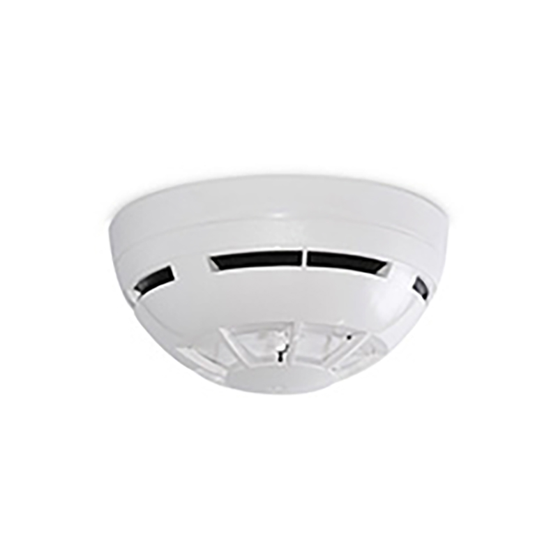 Rivelatore ottico di fumo CONVENZIONALE. Certificazione EN54-7. IP21C. Temperatura di lavoro -30…+70°C. Dimensioni øxP 110x54mm. Alimentazione 10…30Vcc, 40mA