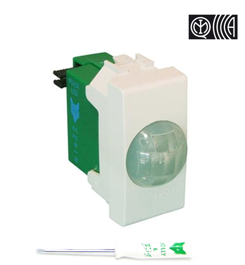 Sensore IR Jolly Micro incasso BT Magic TT (beige). Funzione segnapasso impostabile tramite ponticello. Copertura grandangolo 7 mt. apertura 110°. Elaborazione del segnale a microprocessore con contaimpulsi digitale, compensazione termica a doppia pendenza e memoria di allarme. Altezza di installazione da 30 a 150 cm. Conforme alle Norma EN50131-2-2 grado 2 CL1. Temperatura di lavoro +5…+45°C. Alimentazione 12Vcc, 10mA.
