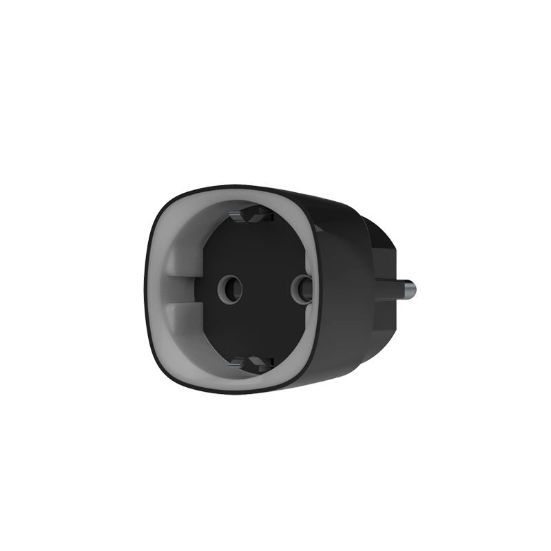 Smart Plug con telecomando – (PN: 13327) Colore nero. Bidirezionale – Senza fili 868 MHz Jeweller – Antenna interna distanza spazi aperti 1000 m – Ingresso/Uscita di alimentazione 110~240 V AC – Potenza massima in uscita fino a 2.5 kW (11 A) – Incorpora un indicatore luminoso secondo il livello di consumo – Permette misurare il consumo – Design compatto.