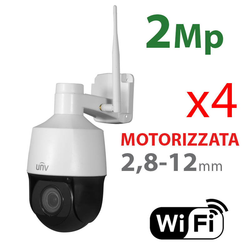 Telecamera motorizzata IP da 2 Mp, Gamma Easy, CMOS a scansione progressiva da 1/2,7″. Obiettivo 2,8~12 mm (4X) | IR 50 m. Audio, Wi-Fi, Micro SD, WEB, Software CMS, Smartphone e NVR. Dimensioni (senza supporto): Φ133mm×248mm.