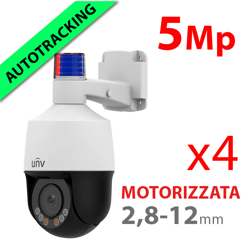 Telecamera motorizzata IP da 5 Mp. Gamma Easy, CMOS a scansione progressiva da 1/2,7″. Obiettivo AF da 2,8 ~ 12 mm (4X) | IR 50 m. Sirena e allarme luminoso, WEB, Software CMS, Smartphone e NVR. Alimentazione: CC 12 V/18 W, PoE IEEE 802.3af. Dimensioni (senza supporto): 269,4 mm (H) x 133 (Ø) mm. Compatibile con: UV-TR-UP06-C-IN, UV-TR-UP06-B-IN staffa da palo; UV-TR-JB07-D-IN junction box.