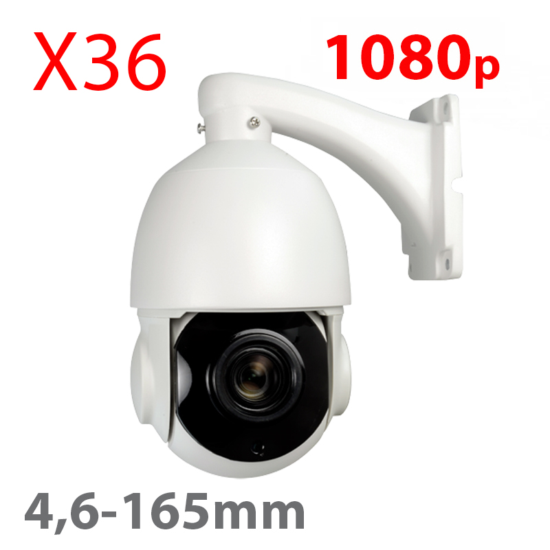 Telecamera speed dome motorizzata HDTVI 1080P (25 FPS), 1/3″ Sony© Exmor IMX323 CMOS, 0.1 Lux (Color), 0.01 Lux (B/N), zoom ottico 36X (4.6 ~ 165 mm) WDR / IP66. IR distanza 100 m. Alimentazione: DC12 V / 3A, Dimensioni senza staffa: 250 mm (H) x 120 (Ø) mm. Alimentatore DC 12V / 3 A e staffa per parete inclusi.