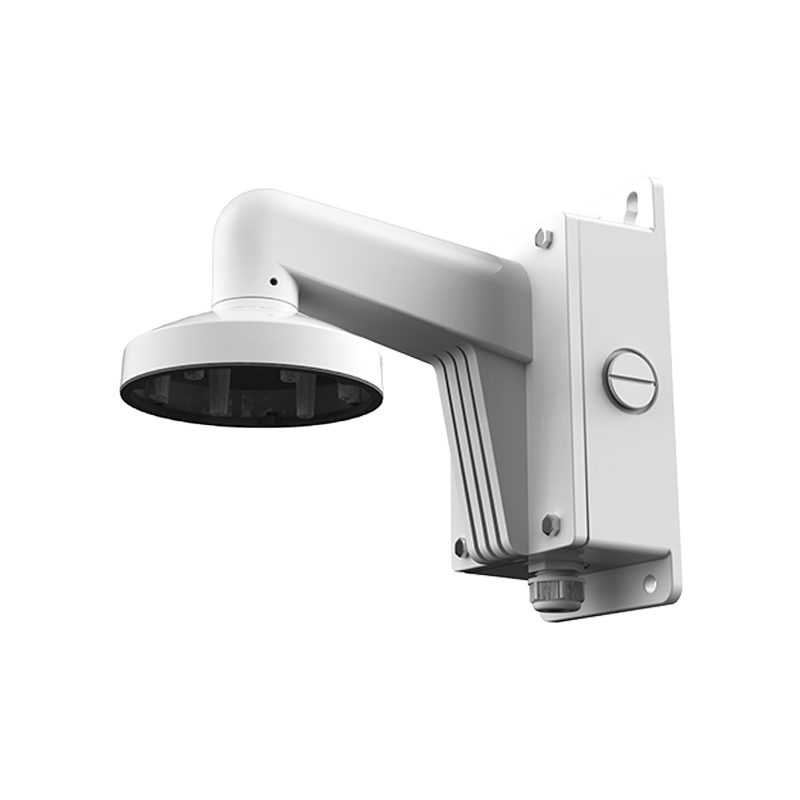Staffa a parete con junction box, adatto per dome, per esterni, colore bianco. Pin cavo. Corpo in lega di alluminio. Dimensioni: 243 x 123 x 140 mm.