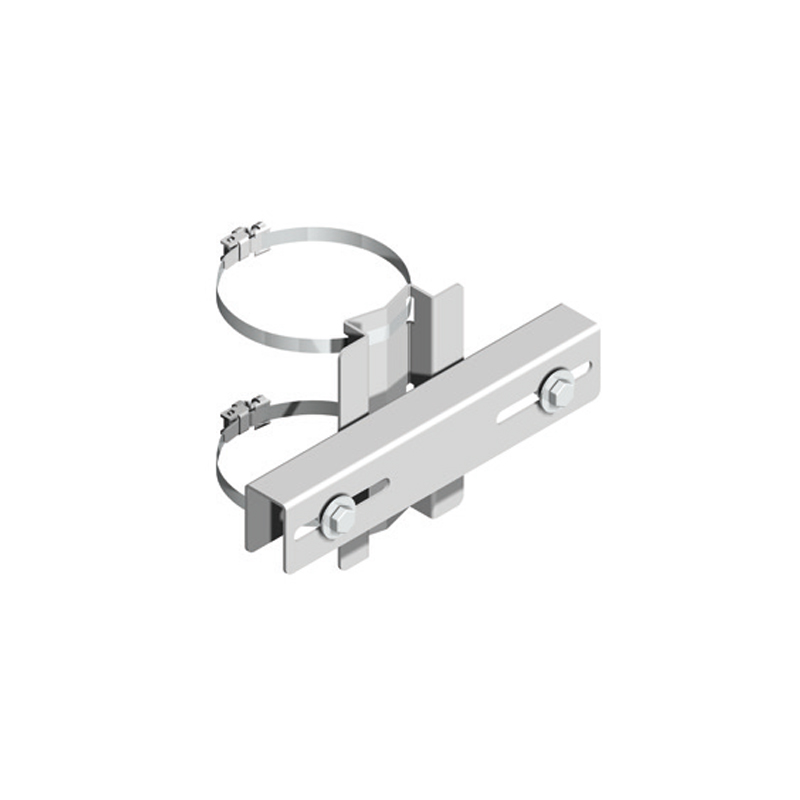 Supporto con doppia fascetta per pali ø 50 ÷ 300 mm – staffa di fissaggio apparecchi da 230 mm – interasse di fissaggio 86 ÷ 210 mm – inox aisi 430