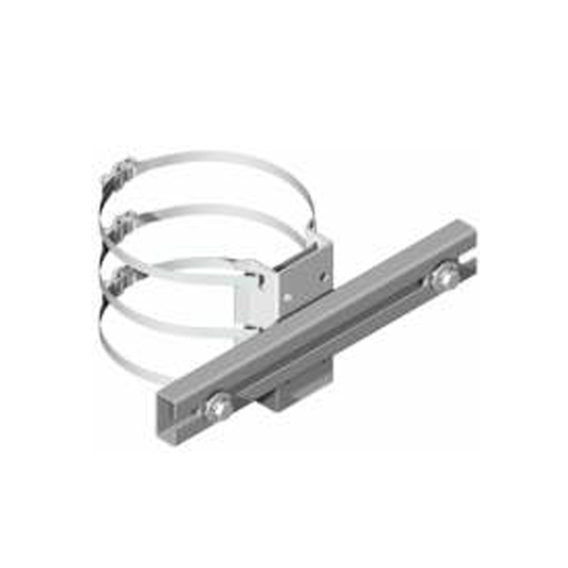 Supporto con doppia fascetta per pali ø 50 ÷ 300 mm – staffa di fissaggio apparecchi da 300 mm – interasse di fissaggio 156 ÷ 280 mm – inox aisi 430