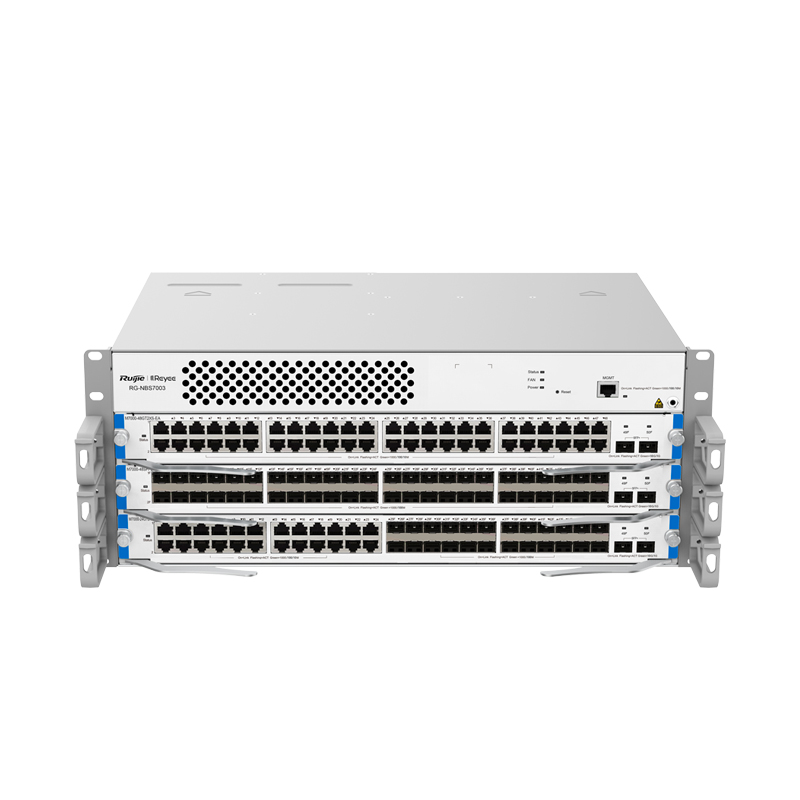 Reyee Switch Layer L3 modulare 3 Slot di Espansione (dimensione totale di 4U). Fino a 144 porte GE / 144 SFP GE / 48 SFP+. Static LAG/DHCP Snooping/IGMP Snooping/Port Mirroring. VLAN/Porta Isolation/STP/RSTP/ACL/QoS/802.1X. Server DHCP/Rotte statiche/RIP/OSPF/SNMP. Alimentazione: 2 Slot di alimentazione ridondante. Compatibili: