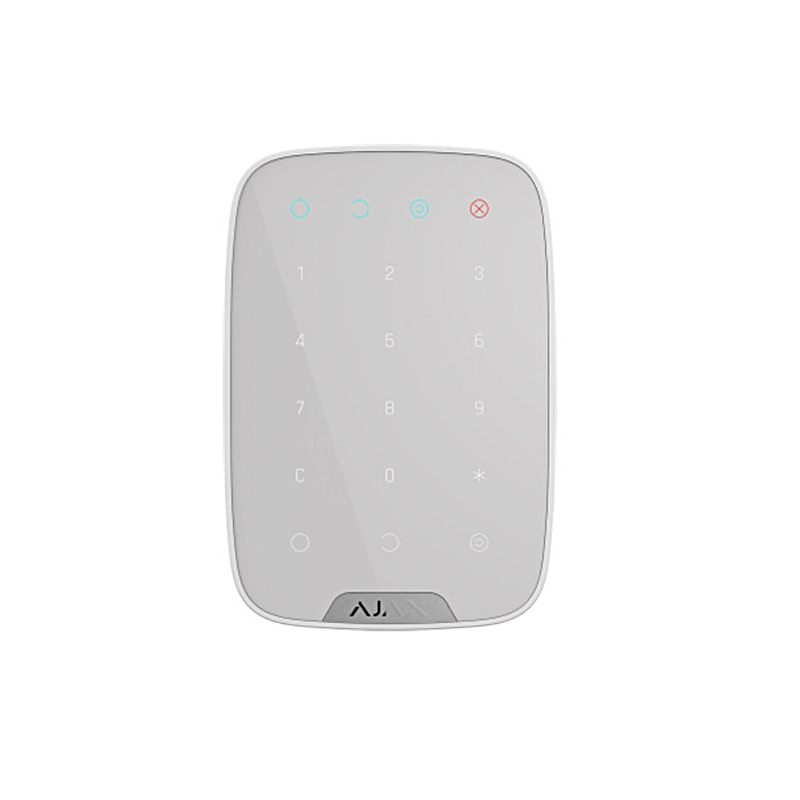 Tastiera Ajax – (PN: 8706) – Colore bianco – Certificato grado 2 – Bidirezionale – Senza fili 868 MHz Jeweller – L’antenna interna raggiunge lo spazio libero fino a 1700 m – Anti tampering – Consente di armarlo totale / parziale / disarmare mediante il codice – Utilizzato per proteggere il pannello in un luogo sicuro – Indicatore LED di stato del sistema – Alimentazione 4 pile AAA 1.5 V Litio (durata stimata 2 anni) – Uso interno – Dimensioni 150х103х14 mm – Peso 197 g – Comprende supporto.