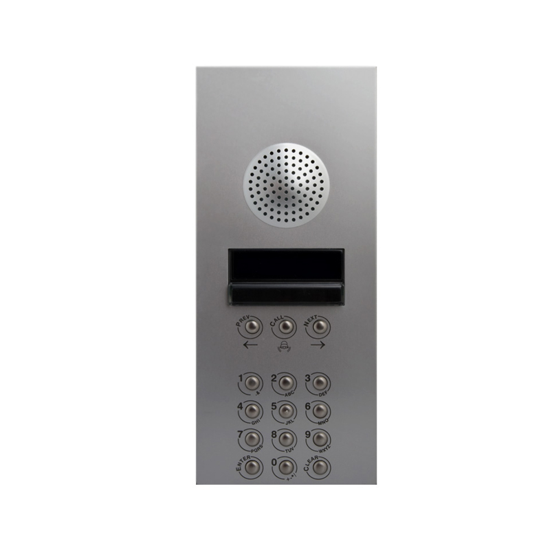 Tastiera audio digitale con rubrica elettronica serie 4000 per sistema VX2300, 2 moduli, antivandalica (IK07) in acciaio satinato, lettore di prossimità RFID integrato. Contatti relè: Contatti puliti/Scarica capacitiva (12Vac/dc 1A max). Alimentazione: fornita dal BUS.