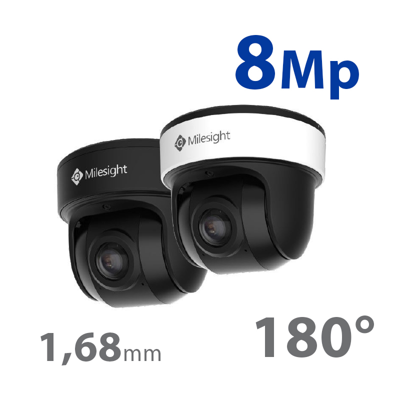 Telecamera mini dome panoramica 180° con AI, 8MP@25fps (4K), ottica fissa 1.68mm, IP67, IK10