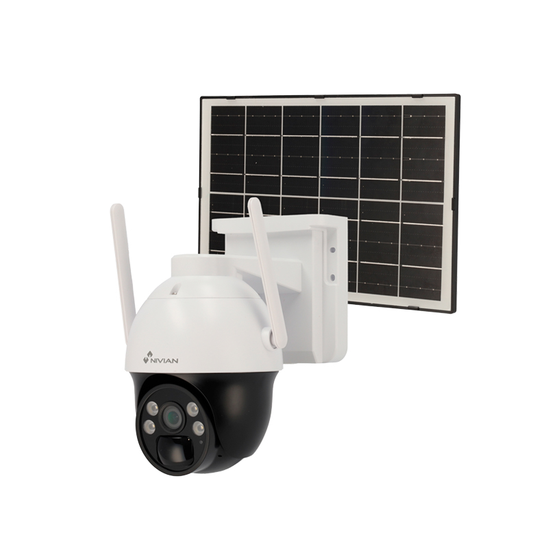 Telecamera Nivian PT motorizzata 4G. Risoluzione 2K / Compressione H.265. IR 30 m / LED bianco e audio con effetto deterrente. Batteria 18000mAh / Pannello solare 7W / PIR. Adatta per esterni IP66. App e Software Eseecloud. Alimentazione: funzionamento stand-alone / Batteria al litio da 18000 mAh. Modalità di ibernazione costante a bassissimo consumo (12 mesi in standby costante). Attivazione quando si rileva la presenza (8 mesi o più con 3 attivazioni/giorno in situazione normale). Pannello solare di 7W incluso per il funzionamento senza ricarica. Caricabatterie: USB-C DC5V (non incluso). Dimensioni (senza imballaggio): Telecamera: 130 x 195 x 170 mm (staffa inclusa). Pannello solare: 265 x 175 (superficie del pannello). Peso (senza imballaggio): Telecamera: 960 g (staffa per palo inclusa). Pannello solare: 650 g (supporto incluso).