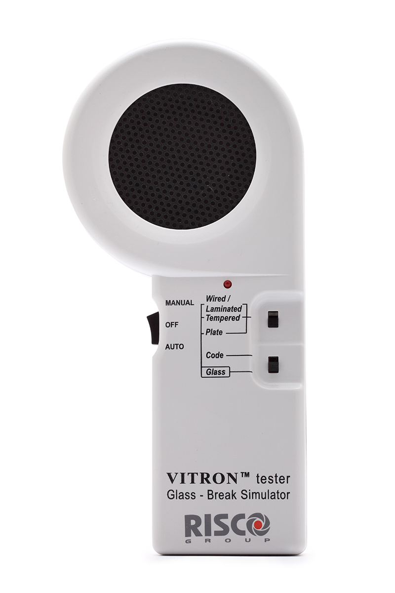 Tester per prova VITRON rilevatore acustico rottura vetro. Genera il rumore di diversi tipi di vetri che si rompono. Alimentazione batteria alcalina 9V.