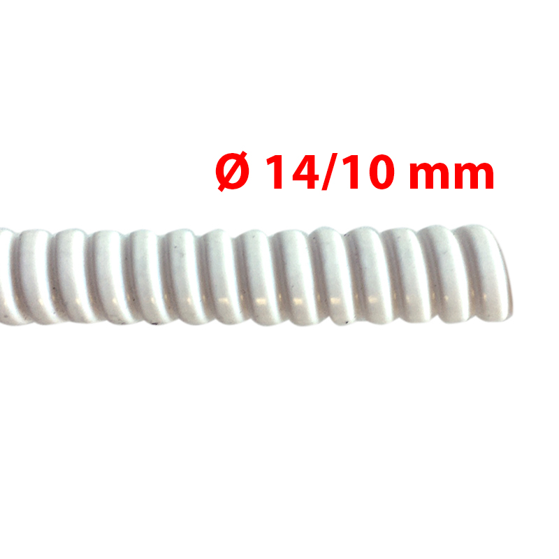 Tubo flessibile di protezione BIANCO acciaio Ø 14/10 mm. Pezzi terminali compatibili M242001.