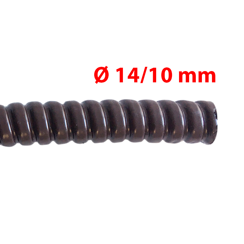 Tubo flessibile di protezione MARRONE materiale inossidabile Ø 14/10 mm. Pezzi terminali compatibili M242002.
