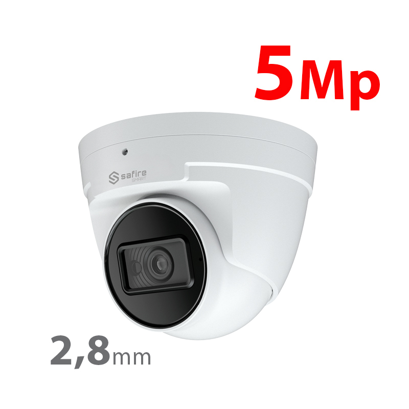 Telecamera Turret SAFIRE SMART 4 in 1, Gamma E1, 5 Mp (2560×1936), 1/2.7″ CMOS. Ottica 2.8 mm. Portata IR 30 m. DWDR, HLC, BLC, AGC. Impermeabile IP67. Alimentazione: DC 12 V / 333 mA, 4W max. Corpo in metallo e supporto in plastica. Dimensioni: 82.8 (H) x 94.6 (Ø) mm. Compatibile con: SF-JBOX-0106, SF-JBOX-0302 junction box; SF-WALLBRACKET-0203 staffa da parete.
