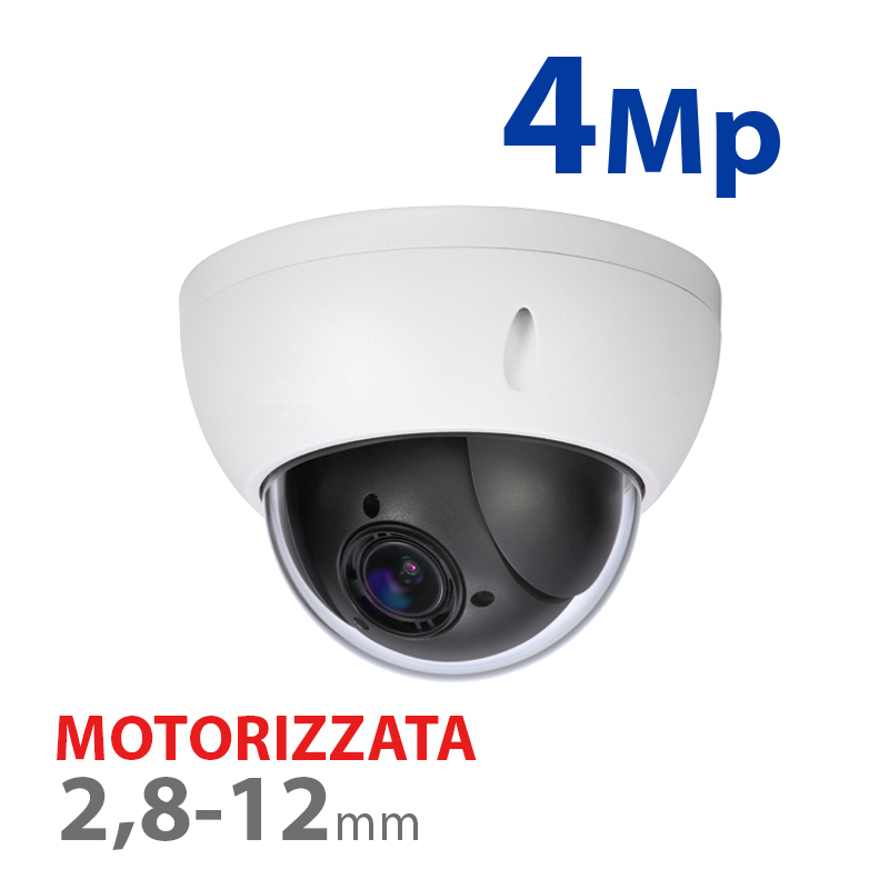 Telecamera dome motorizzata IP 4 Mp Gamma Pro, 1/2.8” STARVIS CMOS. Compressione H.265/H.264/MJPEG. Ottica motorizzata varifocale 4X (2.8~12 mm). Funzioni Intelligenti, WEB, Software, Smartphone e NVR. Alimentazione: CC 12 V/6,1 W, PoE (802.3af). Dimensioni: 89 mm (H) x 122 (Ø) mm. Compatibile con: PFB203W staffa a parete; PFA152-E staffa da palo; PFA137 junction box; PFA106, PFB200C, PFB220C staffa a tetto.