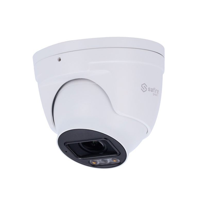 Telecamera Turret IP Safire Smart gamma I1 Night Color IA. Risoluzione 4 Megapixel (2566×1440) 1/1.79″ Progressive Scan CMOS, Night Color X, immagine a colori 24/7h. Waterproof IP67 | PoE (IEEE802.3af). Alimentazione: DC 12 V / 708 mA / 8.5 W máx. / PoE IEEE802.3af. Dimensioni: 118.5 (Ø) × 93.7 (H) mm. Compatibile con: SF-JBOX-0302, SF-JBOX-0106 junction box; SF-WALLBRACKET-0203, SF-WB-0302+0407 staffa da parete; SF-CB-0302+0811 staffa da soffitto.