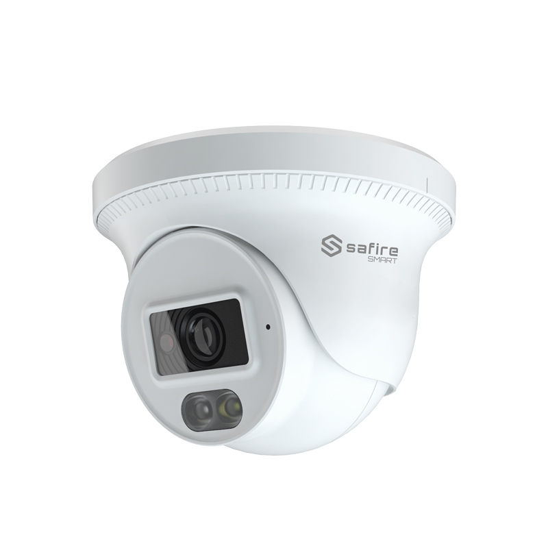 Telecamera turret IP SAFIRE SMART gamma B1 4 Mp 2,8 mm. Rilevamento avanzato del movimento. Doppia ottica: IR + Bianco portata 20 m. Microfono. Waterproof IP67 | PoE (IEEE802.3af). Smart Motion Detection: Rilevamento del movimento di persone che filtra i falsi allarmi. Alimentazione: DC 12 V / 292 mA / 5 W max. / PoE IEEE802.3af. Dimensioni: 94.8 (ø) x 82.8 (H) mm. Compatibile con: SF-JBOX-0105, SF-JBOX-0103, SF-JBOX-0302 junction box; SF-WALLBRACKET-0203 staffa da parete.