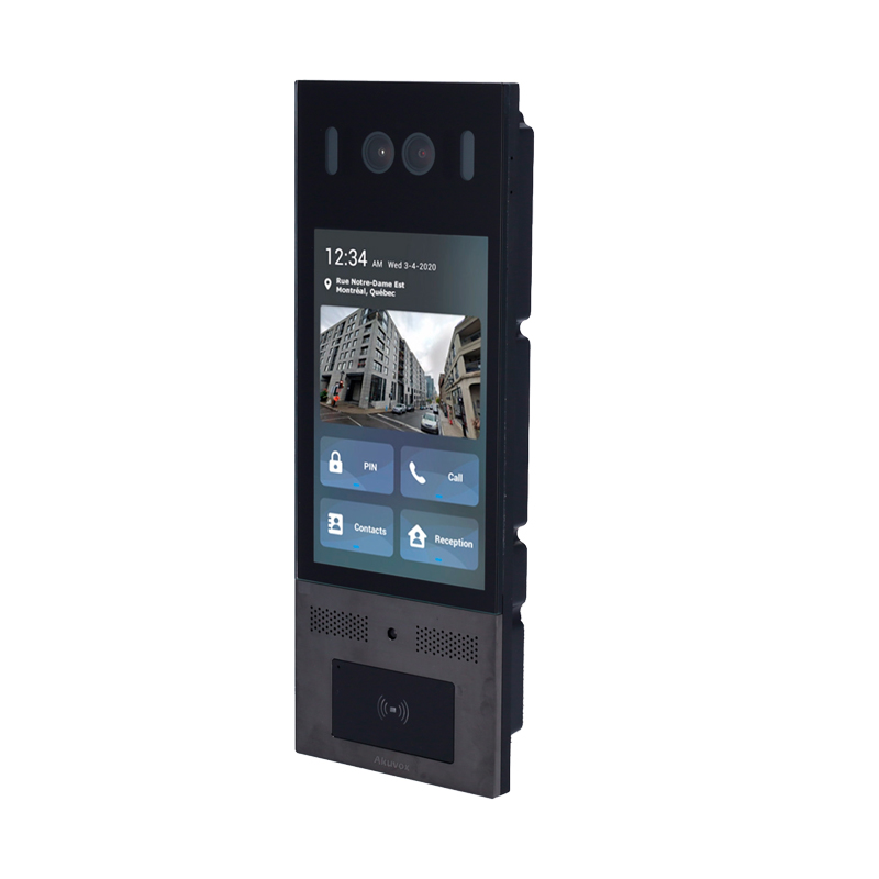 Videocitofono IP antivandalo IK10 montaggio su superficie, doppia telecamera 2 Mp. Audio bidirezionale Crystal Clear. Riconoscimento Facciale, scheda EM/MF, PIN, BLE e QR, 3 relè, PoE+, SIP standard, Schermo IPS 8″. Manutenzione Cloud. Collegamento monitor e postazione esterna tramite Cloud. Lente grandangolare. Telecamera principale con starlight e HDR. Telecamera secondaria da 2 Mp per tecnologia anti-spoofing. Doppio altoparlante e doppio microfono integrati. Visione notturna con illuminazione IR. LED bianchi per la lettura di QR. Connessione TCP/IP. PoE+ IEEE802.3af. Lettore di schede EM/MF integrato. Apertura tramite riconoscimento facciale, BLE e chiavi temporanee QR o PIN. Sblocco porte a distanza, 3 uscite relè per porta. Uscita di 12V/400mA. Porte Wiegand, RS485 e spira magnetica. Schermo IPS Android di 8″ a colori configurabile. Superficie in acciaio inox SUS316 antivandalo. Montaggio su superficie o da incasso con supporto aggiuntivo. Configurazione completa tramite browser web. Notifiche push e chiamate tra dispositivi tramite l’app SmartPlus, 4 utenti gratuiti inclusi in ogni account dell’app. Elenco chiamate e utenti visualizzato sullo schermo. Aggiornamenti del firmware via cloud con controllo da parte dell’installatore. Connessione tra placche e monitor tramite cloud su reti diverse. Accesso remoto alla configurazione per l’installazione. Compatibile con: MF-TAG-Y tag di prossimità; DR-54NDF/M apriporta elettrico; AK-BR-X915-F supporto per videocitofono.