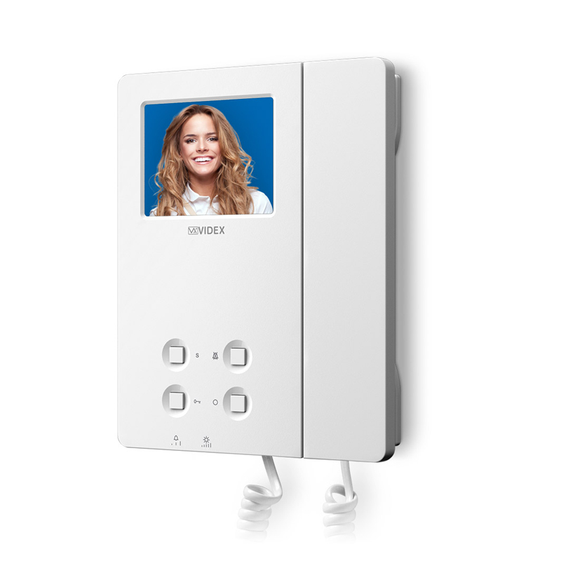 Videocitofono con monitor a colori LCD TFT da 3,5” per il Sistema Digitale Videx VX2300 bus 2 Fili, serie 6200. 4 pulsanti “Servizio”, “Privacy/Attivazione relè di Bus”, “Apri porta/Chiamata intercomunicante” “Auto-accensione/Commutazione telecamera”. Memoria video 100 immagini. Montaggio in superficie, finitura bianco satinato, supporto da tavolo Art. 62931. Dimensioni: 144 x 182 x 27 mm (L x H x P).