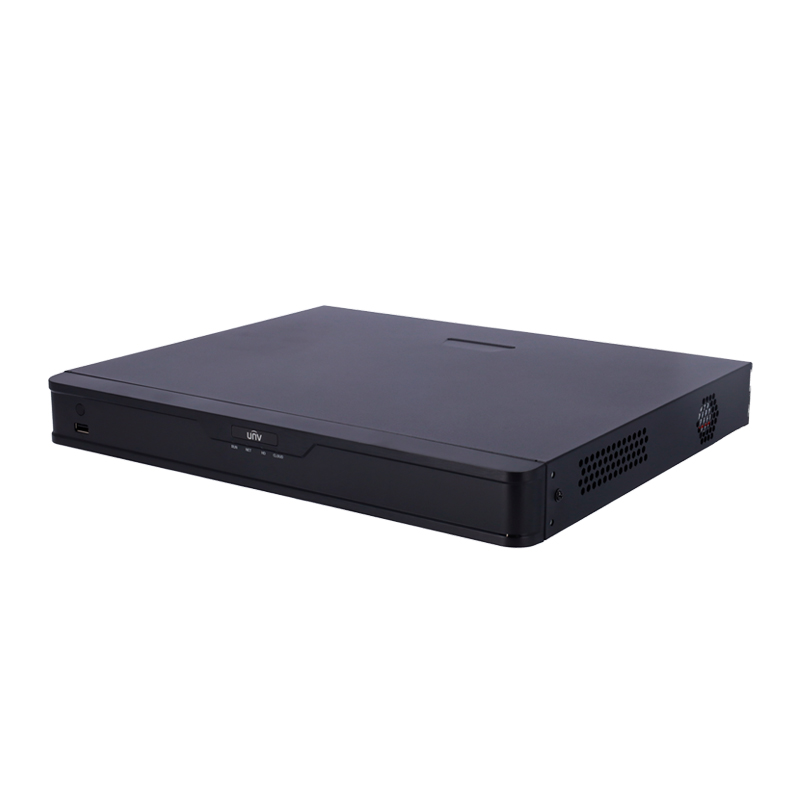 Videoregistratore 5n1 Uniview. Gamma Easy, 16 CH HDTVI / HDCVI / AHD / CVBS + 8 extra IP. Audio. Ammette 2 hard disk. Alimentazione: DC 12 V / 12 W. Dimensioni / Peso: 380 × 326 × 53 mm / 1.9 kg.