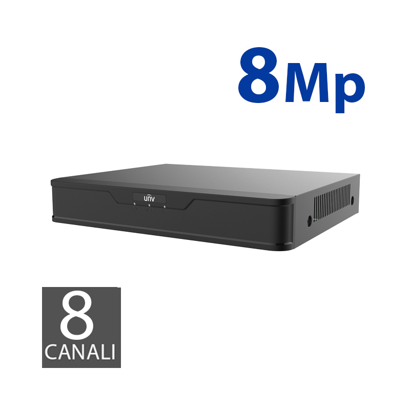 Videoregistratore 5n1 Uniview, Gamma Easy, 8 CH HDTVI / HDCVI / AHD / CVBS + 4 extra IP. Audio / Allarmi: 4 entrate / 1 uscita. Ammette 1 hard disk. Dimensioni / Peso: 47 (H) x 260 (L) x 226 (P) mm / 1.1 kg. Alimentazione: DC 12 V / 12 W.