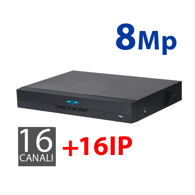 Videoregistratore 5n1 X-Security, 16 CH HDTVI / HDCVI / AHD / CVBS / 16+16 IP, 4KL (7FPS) / 5M (12FPS) / 4M/3M (15FPS), 1080P/720P (25FPS). 1 CH audio. Uscita HDMI 4K e VGA. Ammette 1 hard disk. Rilevamento dei volti, riconoscimento dei volti, protezione perimetrale. Alimentazione: DC 12 V / 3 A. Dimensioni: 55 (L) x 325 (P) x 255 (H) mm / 2 Kg.